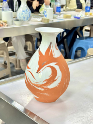 后期创作阶段,课程难度逐步提升。在釉上新彩绘制课程中,同学们牢记“颜色忌厚涂”的要点,从笔筒、瓷板等品类中任选两件完成作品;在大花瓶雕刻课上,同学们谨慎处理坯体,即便遇到坯体破损,也巧妙转化为艺术造型,展现了灵活的创作思维。