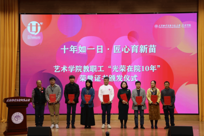 典礼现场,学院领导为执教逾十年、二十年的教师代表颁发荣誉证书。