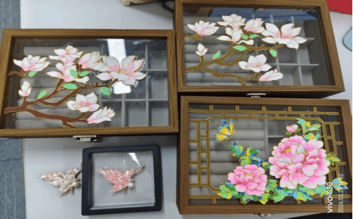 女教职工们凝神专注、精益求精,从勾勒纹样轮廓,到弯折金属丝粘丝定型,再到调配釉料层层点染,每一步都饱含巧思。纤细的金属丝化作牡丹、玉兰等雅致纹样,缤纷釉料晕染出斑斓色彩,普通首饰盒在巧手下变得绚丽多姿。大家边创作边交流心得、切磋技巧,一件件独一无二的掐丝珐琅首饰盒逐步成型,凝聚着匠心巧思,也承载着对生活的热爱和对非遗文化的敬意。