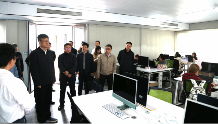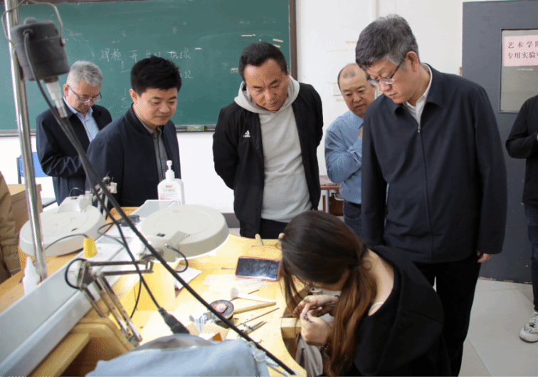 郑清春一行首先来到坐落在柳林设计之都的数智文化与创意产业学院,与企业负责人、学院师生进行交流,深入了解产业学院运营情况、以及需要协调解决的问题,并观看了学生作品。期间,天津城投集团副总经理、城更公司党总支书记、董事长王俊峰向郑清春介绍了柳林设计之都整体建设情况、低空经济发展状况。随后,郑清春一行来到大小球盘(中国)唯一官方网站 首饰加工综合实验室、首饰金工实验室、绿幕拍摄实验室、影棚、VR大空间,与师生进行交流,详细了解艺术创作成果、学科建设与实践教学开展情况。